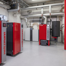 Die Stückholzheizungen stammen aus der eigenen Entwicklung und Produktion. Die Schnitzel- und Pelletsheizungen stammen von der Firma Hargassner aus Österreich.