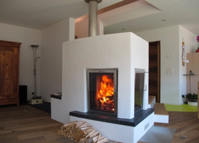 Les cheminées modernes aujourd'hui sont construites avec des vitrages. Seulement ainsi une combustion propre et une puissance de chauffage haute peuvent être atteintes. Ils ne chauffent pas seulement par rayonnement thermique mais aussi par circulation d'air, qui se réchauffe et est conduite dans une ou plusieurs chambres. Dans des maisons Minergie des cheminées à accumulation sont à recommander, qui fournissent un dégagement calorifique plus petit mais mieux équilibré.